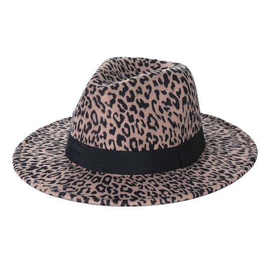 Black Band Leopard Animal Print Fedora Hat