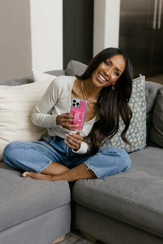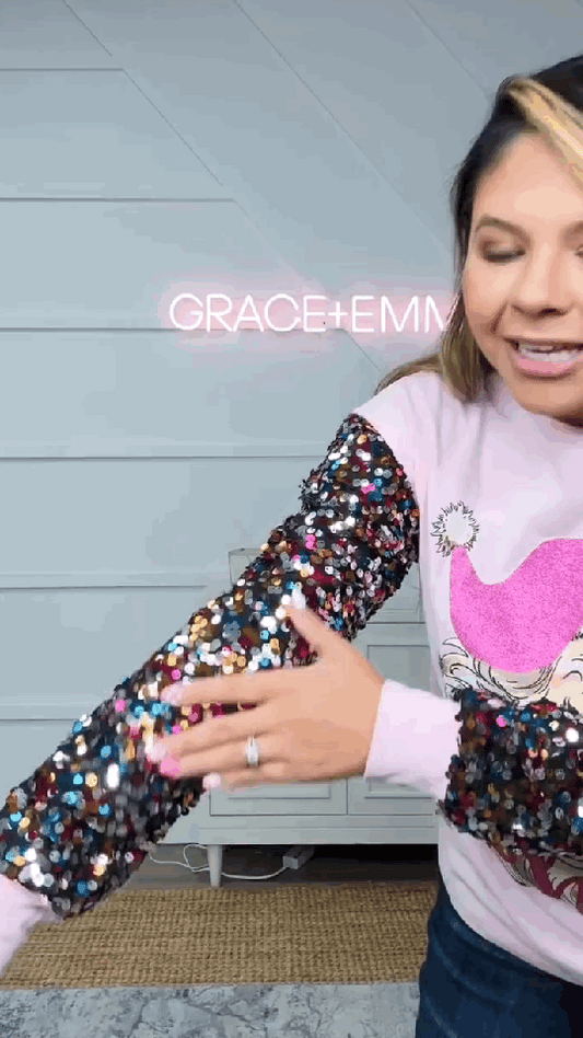 Santa on Pink Sweatshirt with Sequin Sleeves