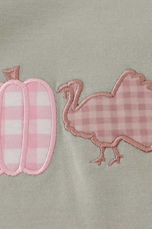 Sage pumpkin turkey applique ruffle dress
