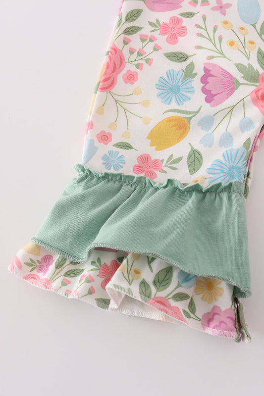 Floral stripe ruffle 2pc swimsuit UPF50+