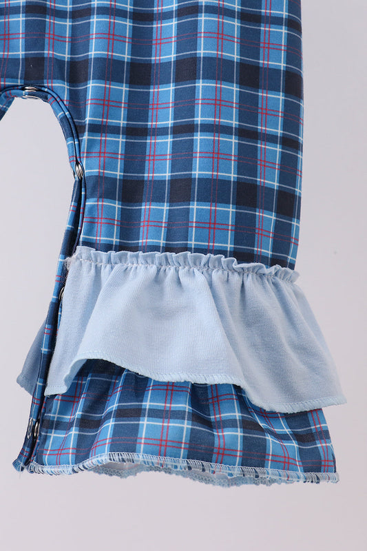 Navy christmas santa cookie milk embroidery ruffle pants set