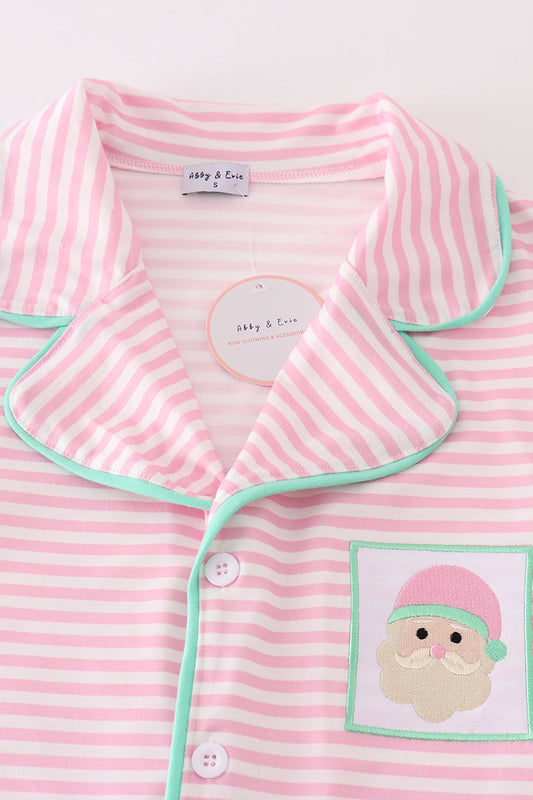 Pink stripe christmas santa claus embroidery women pajamas pants