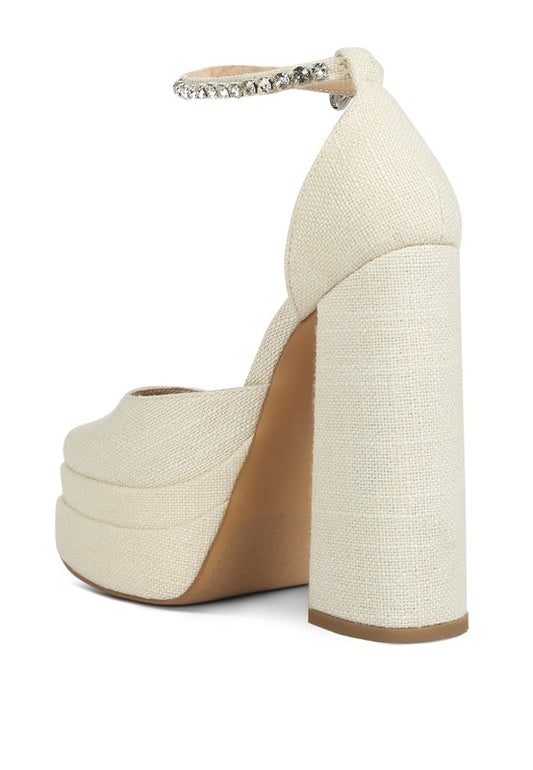 Cosette Embellished Ankle Strap High Block Heel