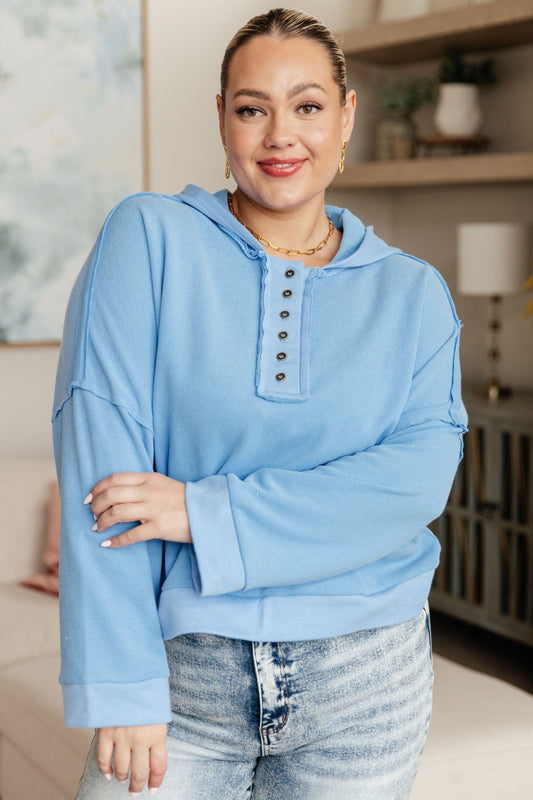 Women Sky Blue Split V Neck Oversized Denim Blouse