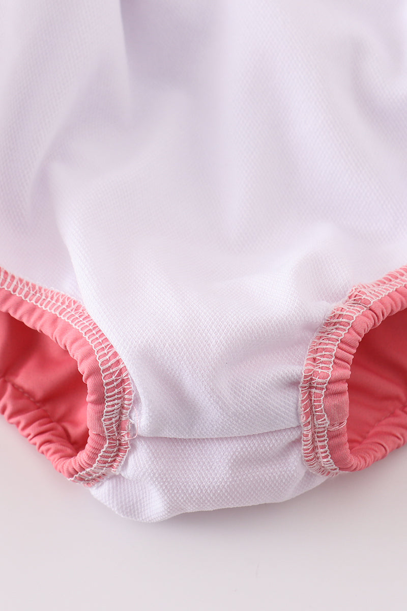 Make a splash at the beach with our playful Beach palm print 2pc girl swimsuit! With a fun palm tree print and a two-piece design, your little one will look stylish and feel comfortable while swimming. Perfect for any beach day or pool party. (No boring one-pieces here!)