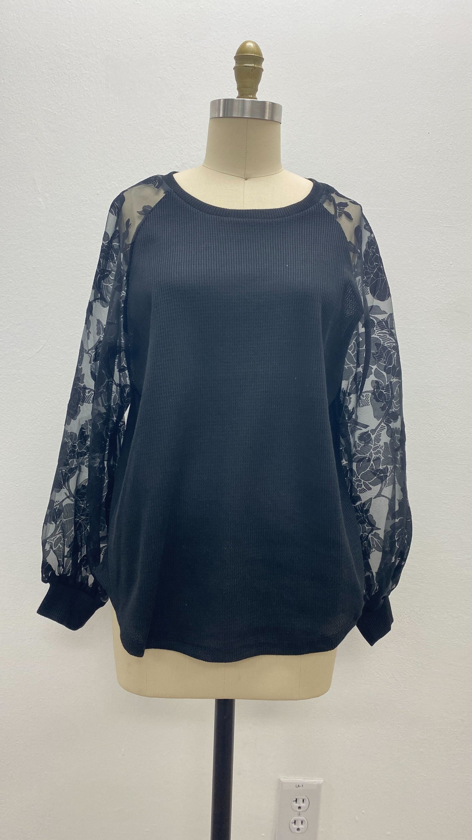 The unlined design and V-neck add a classic touch, while the lace inserts on the sleeves provide a delicate, feminine detail. Perfect for layering or wearing on its own, this top effortlessly combines style and comfort.
