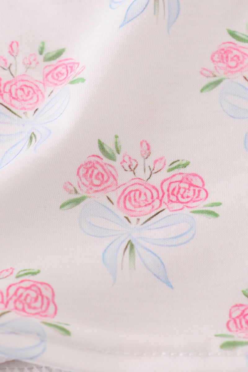 Blue floral bow print ruffle bloomer set