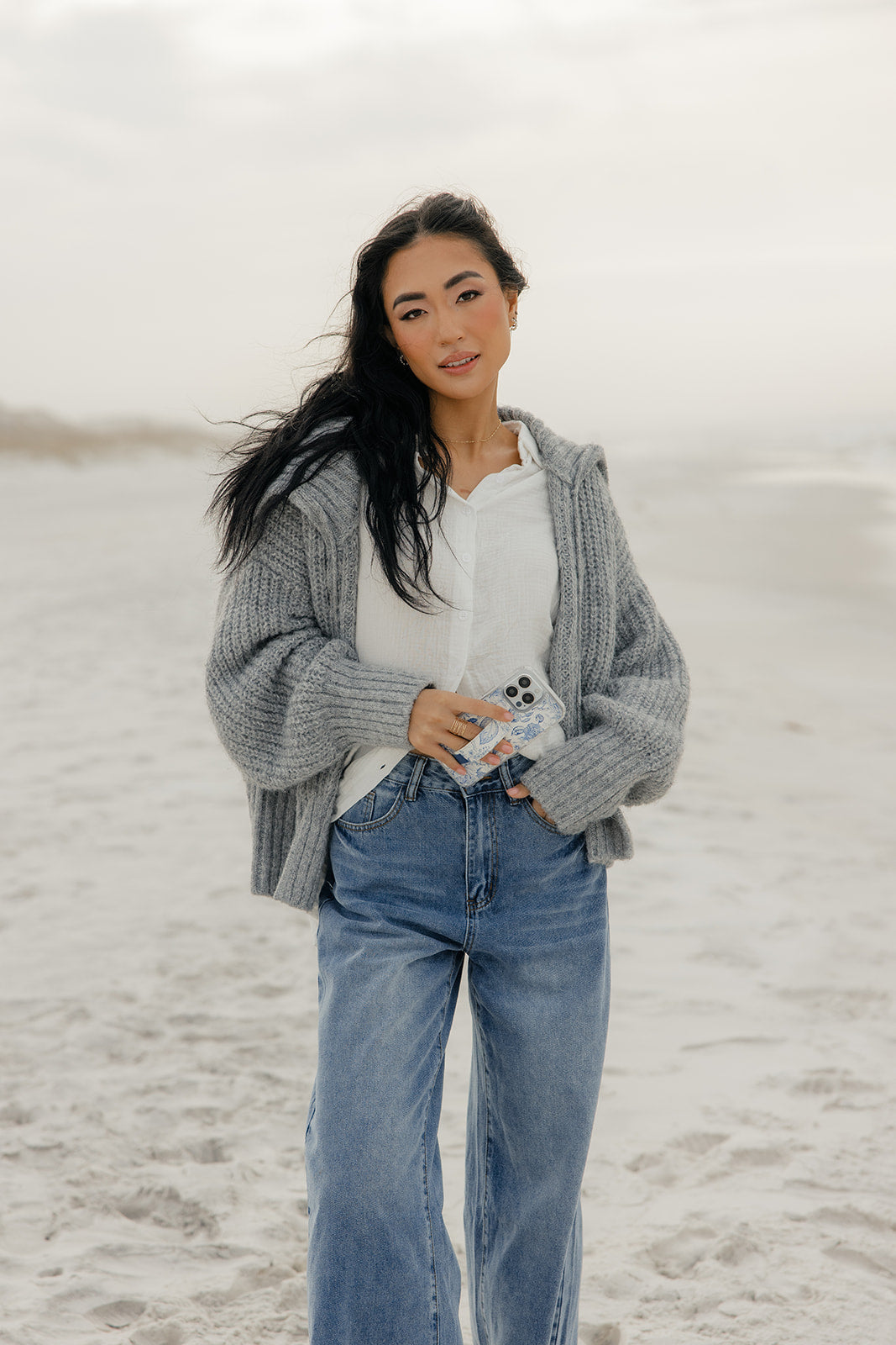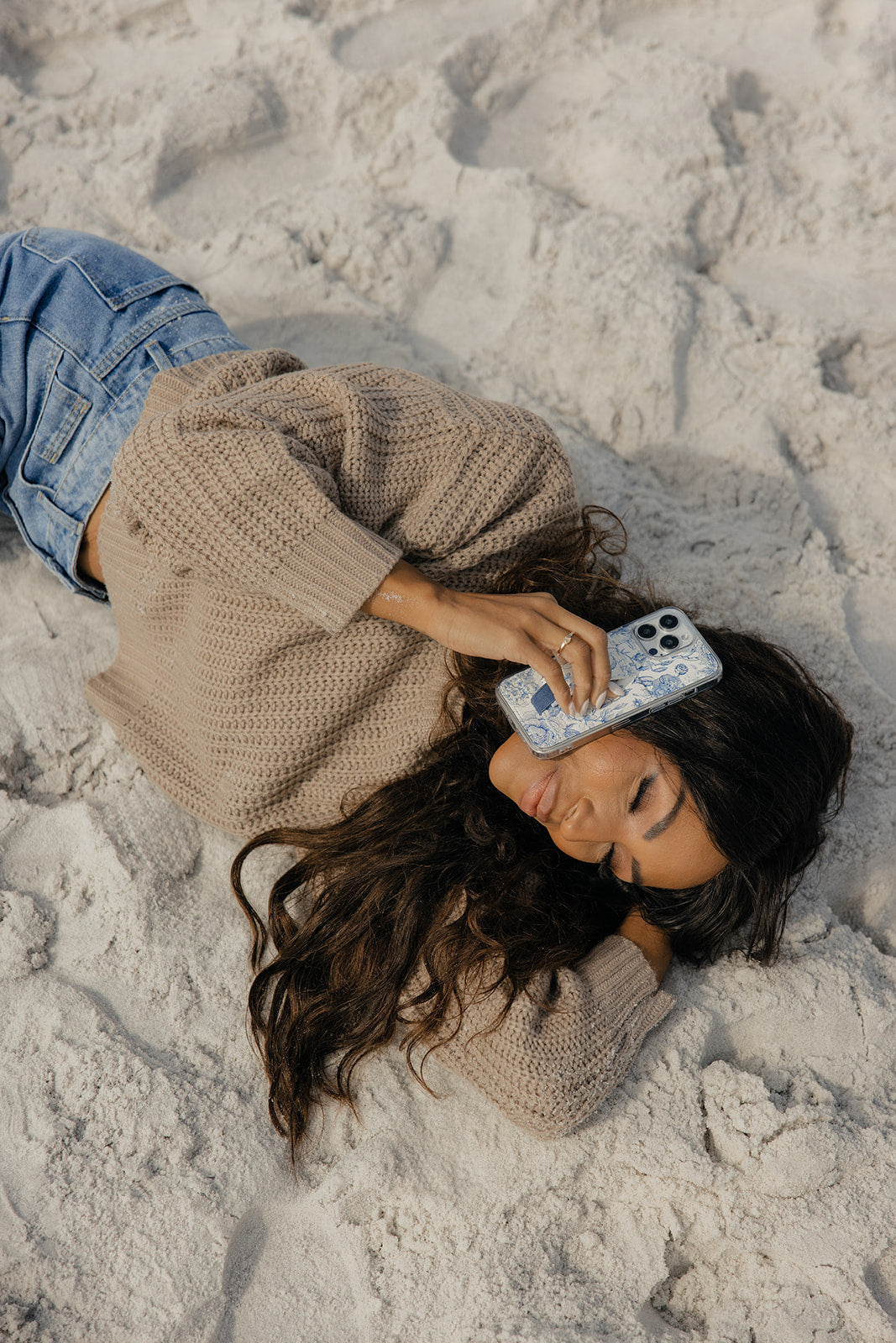 Case Design: Blue deltware floral design on a white background