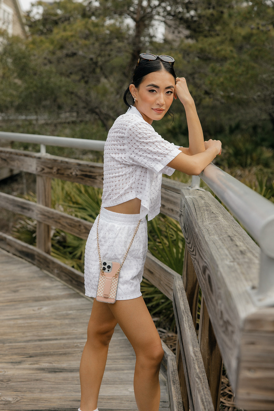 Pair this case with the coordinating Blush Check wrist lanyard and Apple watch band!
