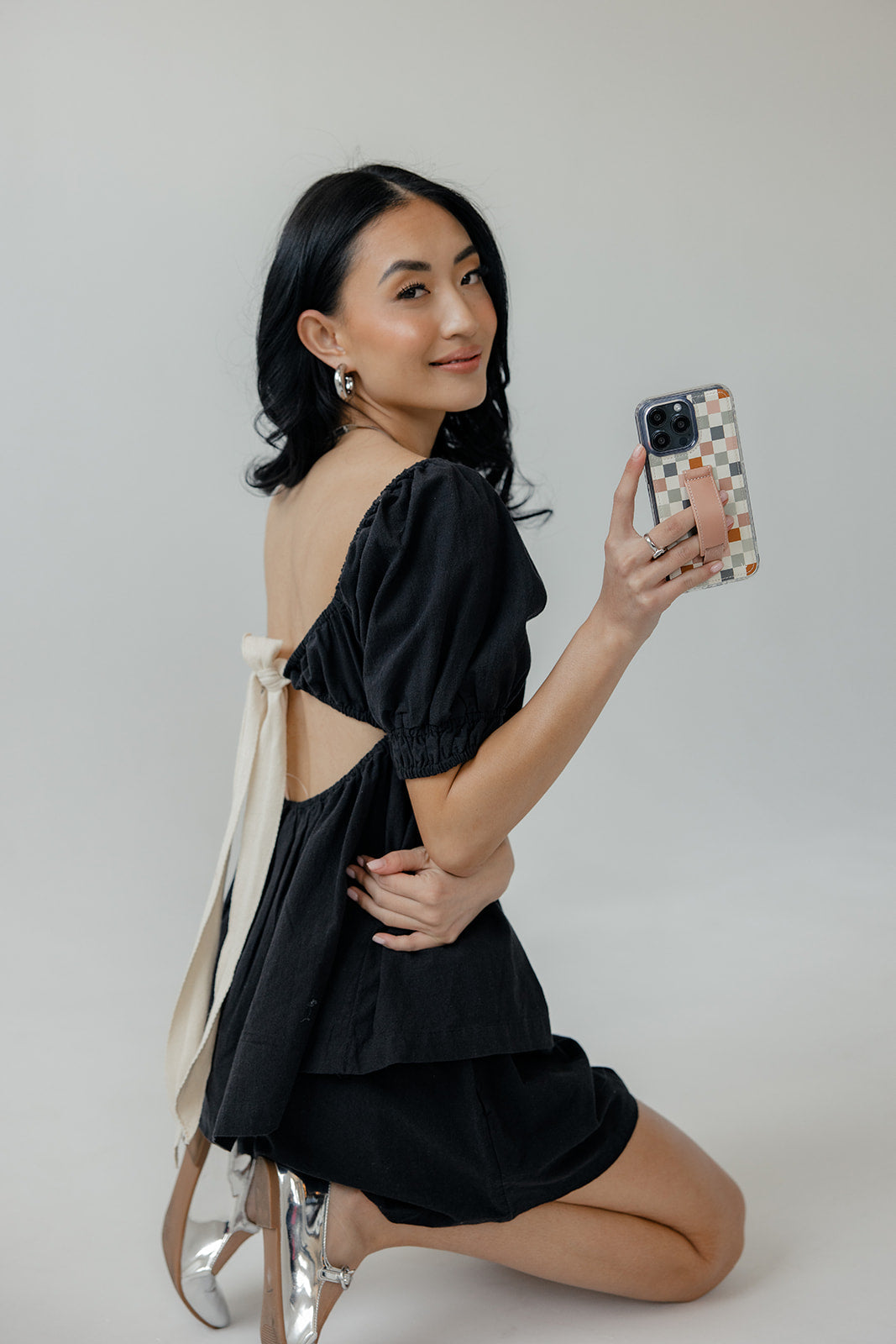 Case Design: Pink, blue, grey, and rust checker