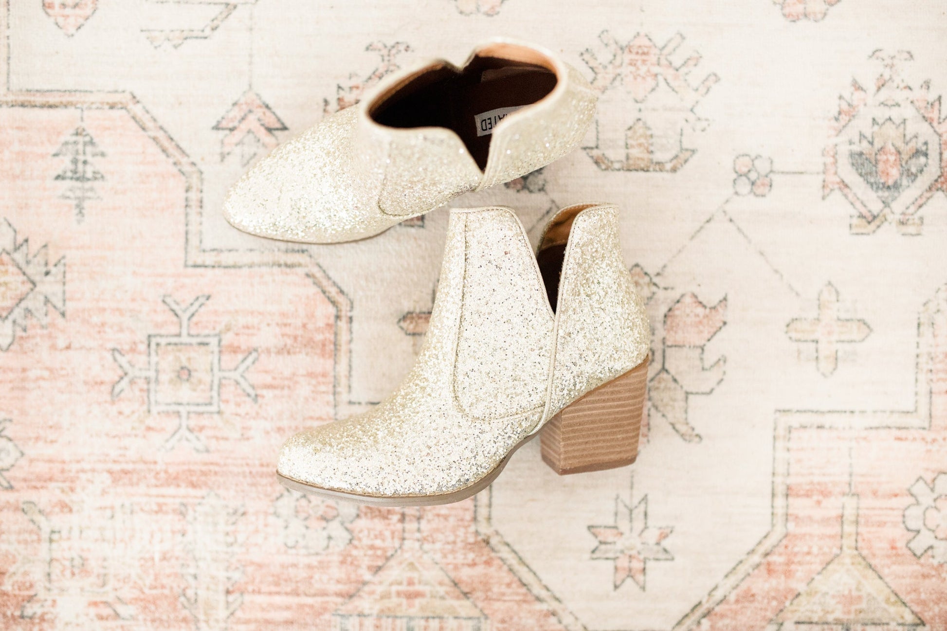 Some of our best selling booties last year were the charcoal version of these. They are back in gold! NOTHING quite says 'I'm here for the party' like a pair of glitter booties.
