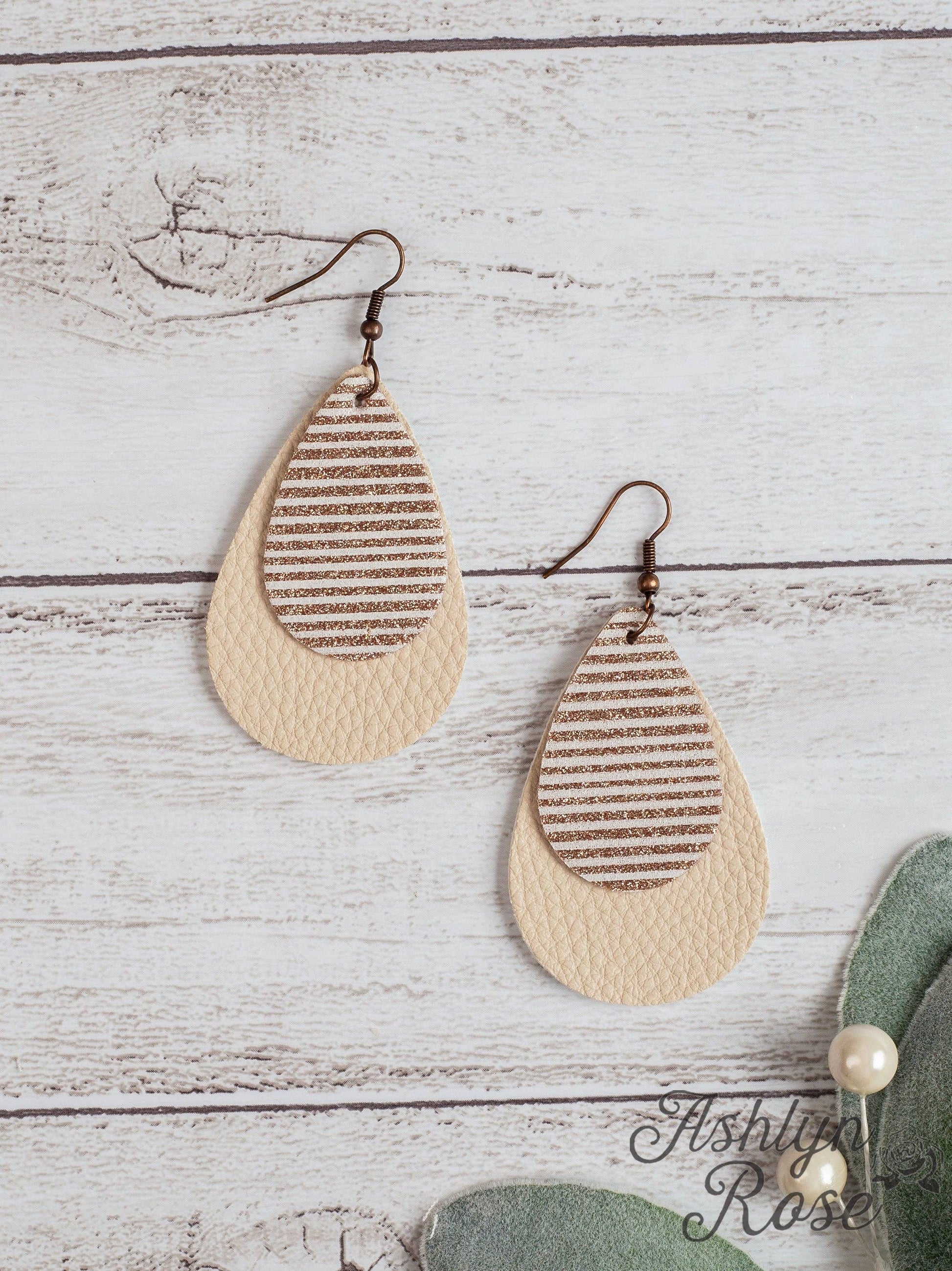 Glitter Stripe Double Teardrop Earring On Cream, Cream