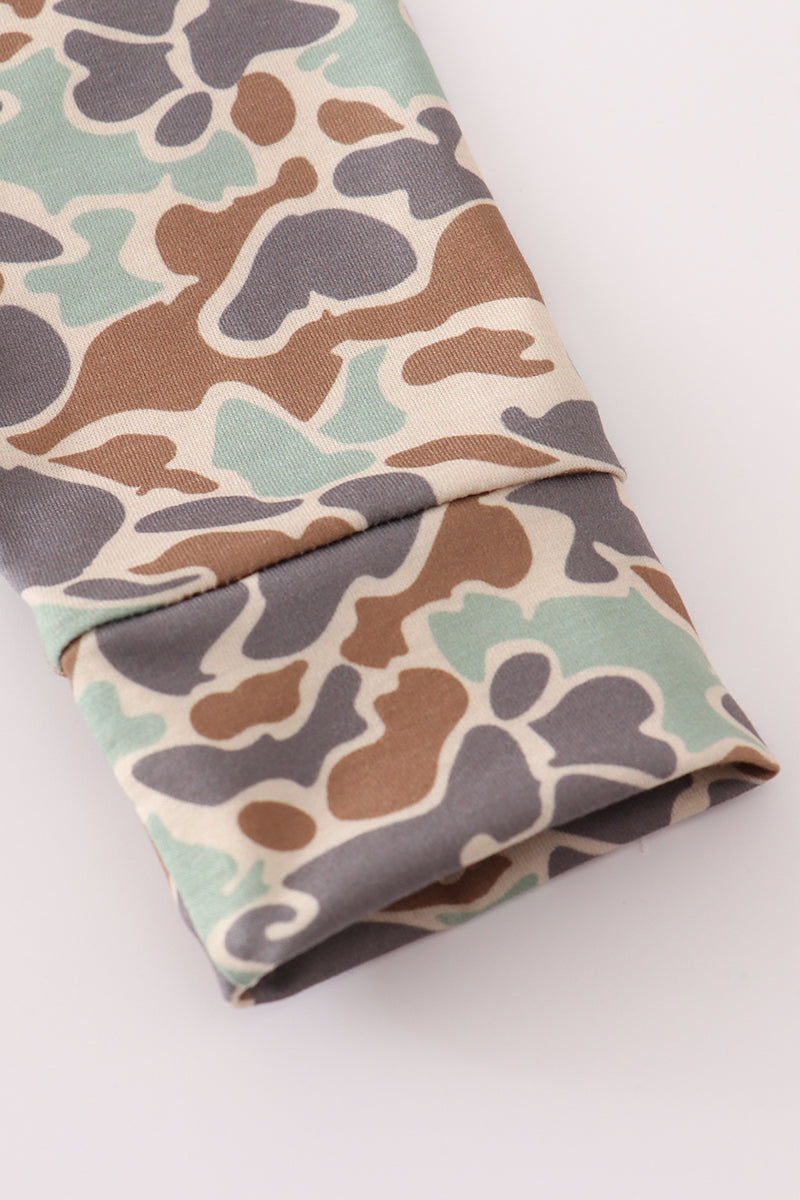 Green camouflage cow tractor applique pants set
