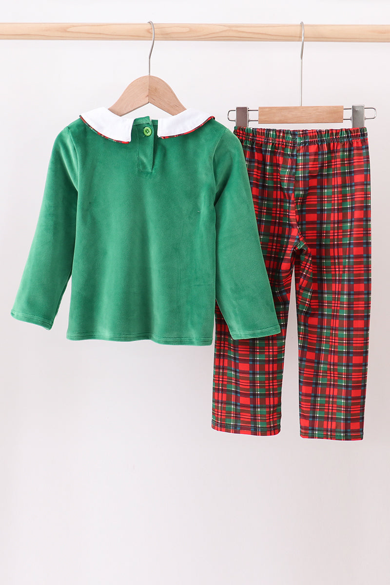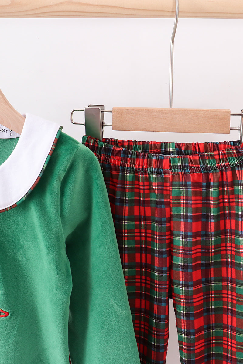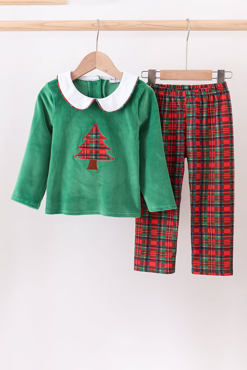 Get into the holiday spirit with this playful green pants set featuring adorable Christmas tree appliques. Soft and cozy, it’s perfect for festive days filled with fun and laughter. Let little ones shine bright while staying comfy all season long!