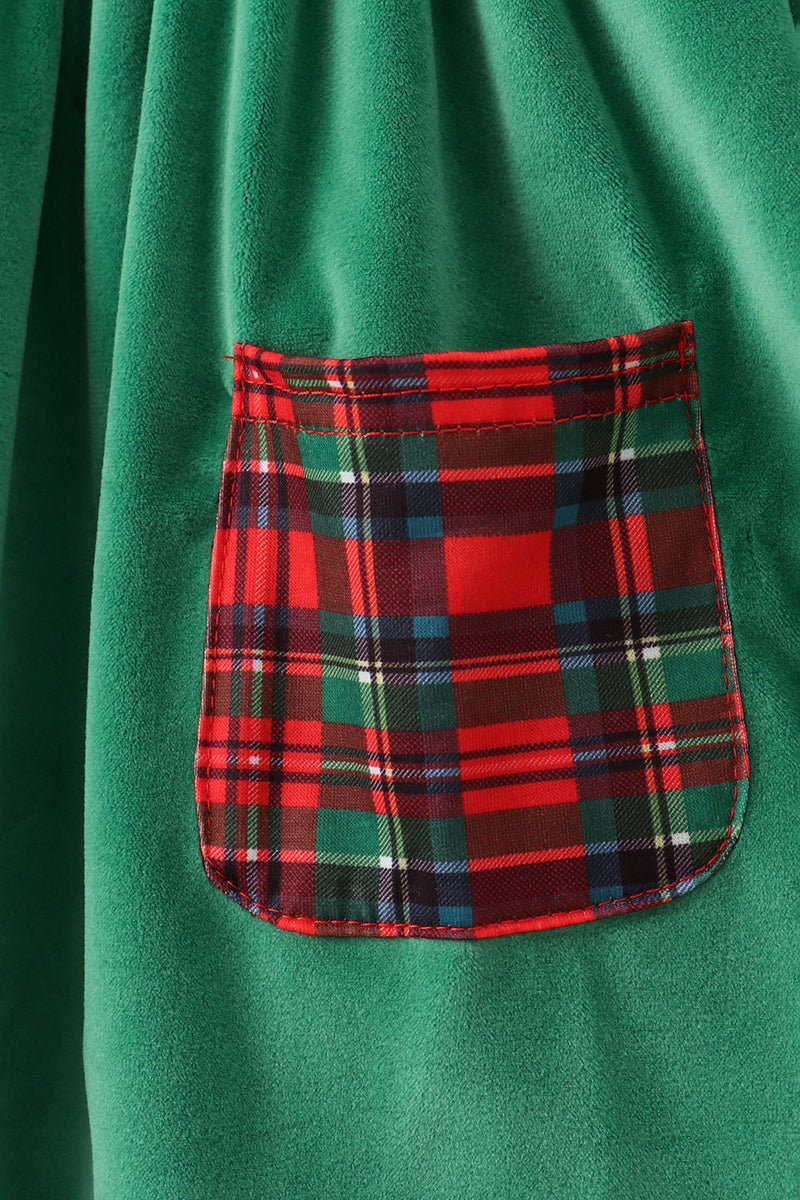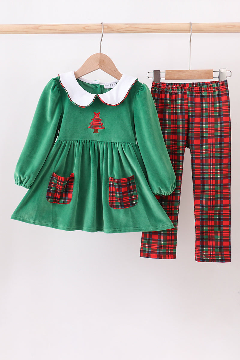 Get festive with this Green Christmas Tree Applique Velvet Pants Set! Soft velvet fabric keeps you cozy, while the cheerful tree applique adds a fun holiday touch. Perfect for lounging by the fire or holiday parties, this set brings comfort and seasonal charm together in one playful outfit.