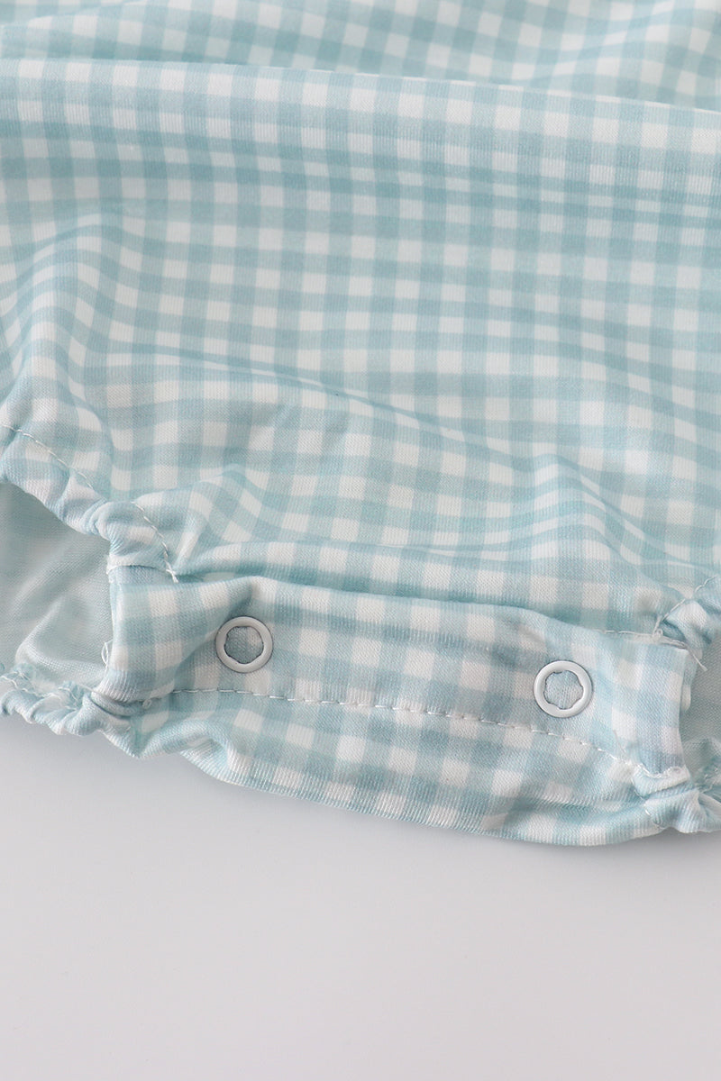 Take a stroll in the countryside with this playful green farm windmill embroidery gingham bubble. Made with high-quality materials, it's both comfortable and stylish. Add a touch of whimsy to your wardrobe with this unique piece. (Or should we say, "ewe-nique"?)