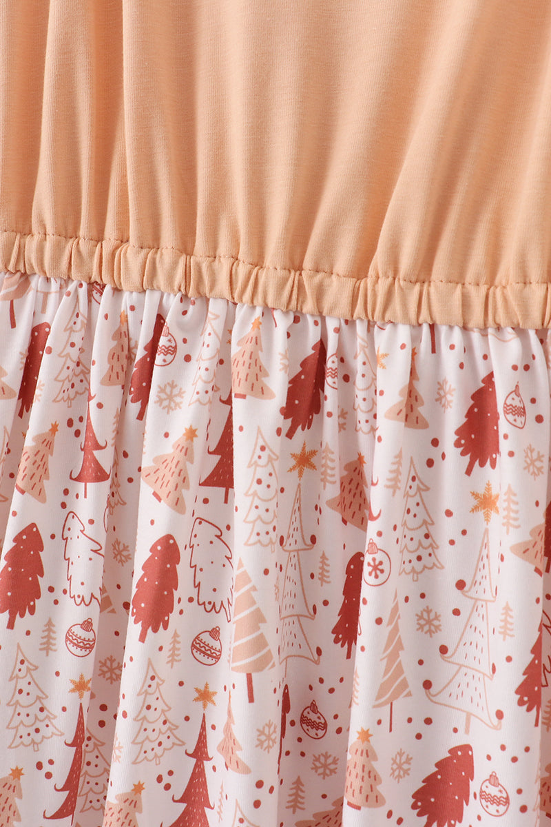 Khaki christmas tree applique women dress