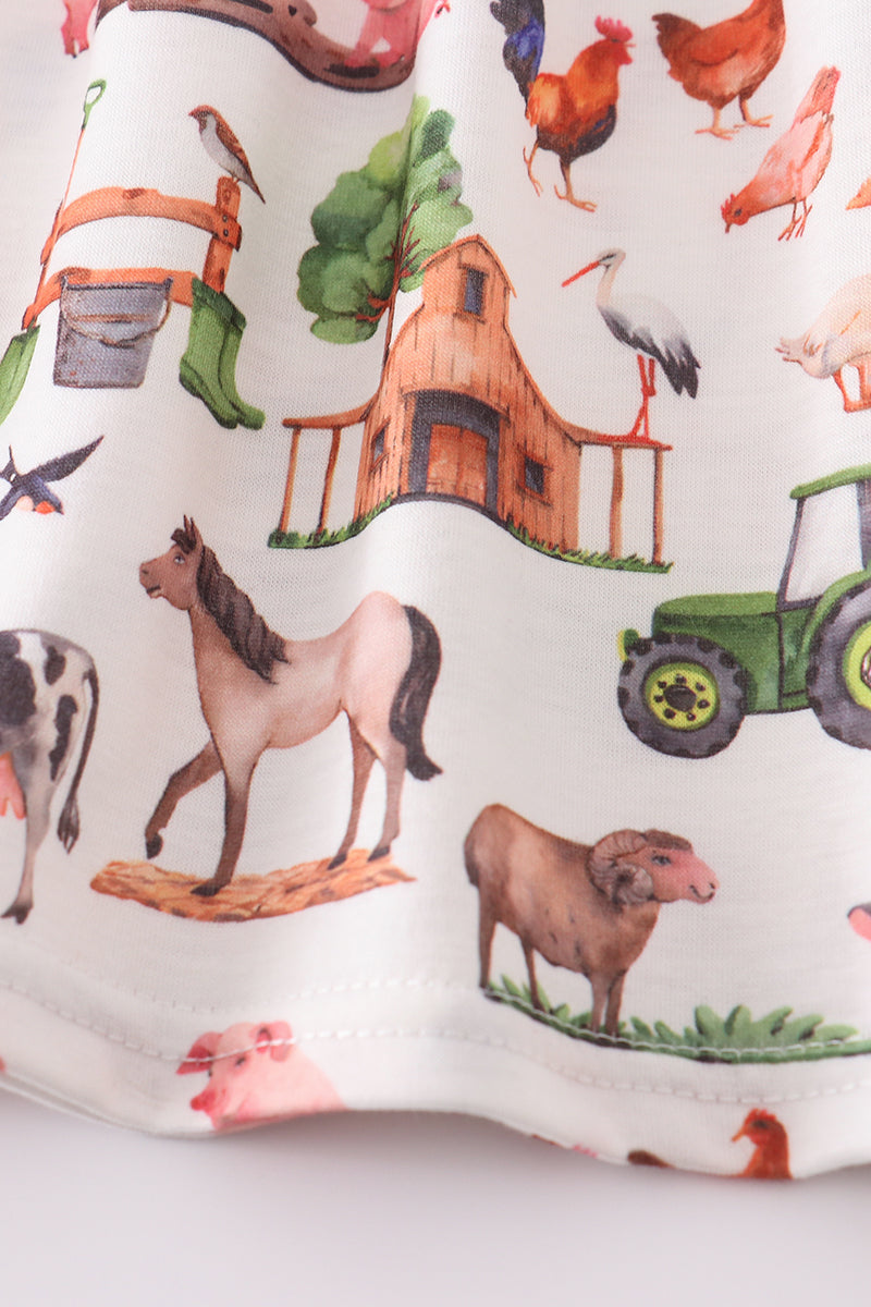 Khaki farm print bow girl set