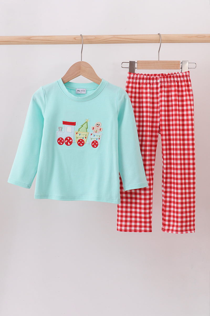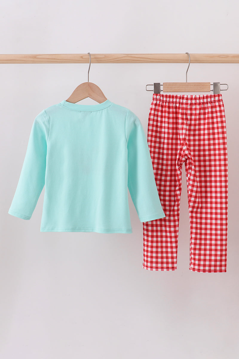 Mint gingerbread applique pants set
