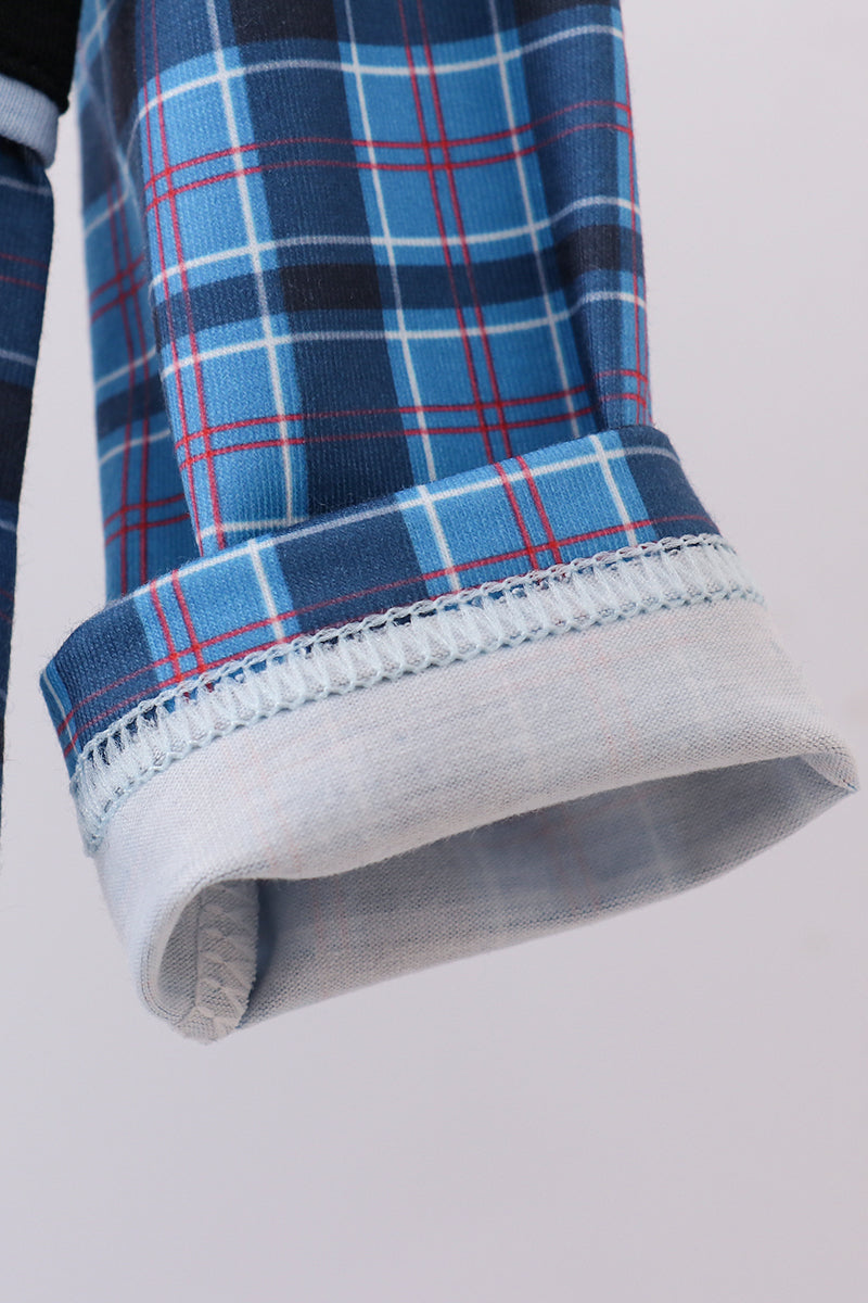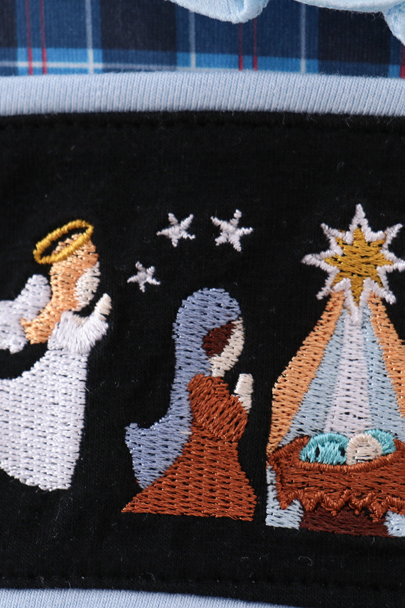 Navy nativity embroidery plaid ruffle romper