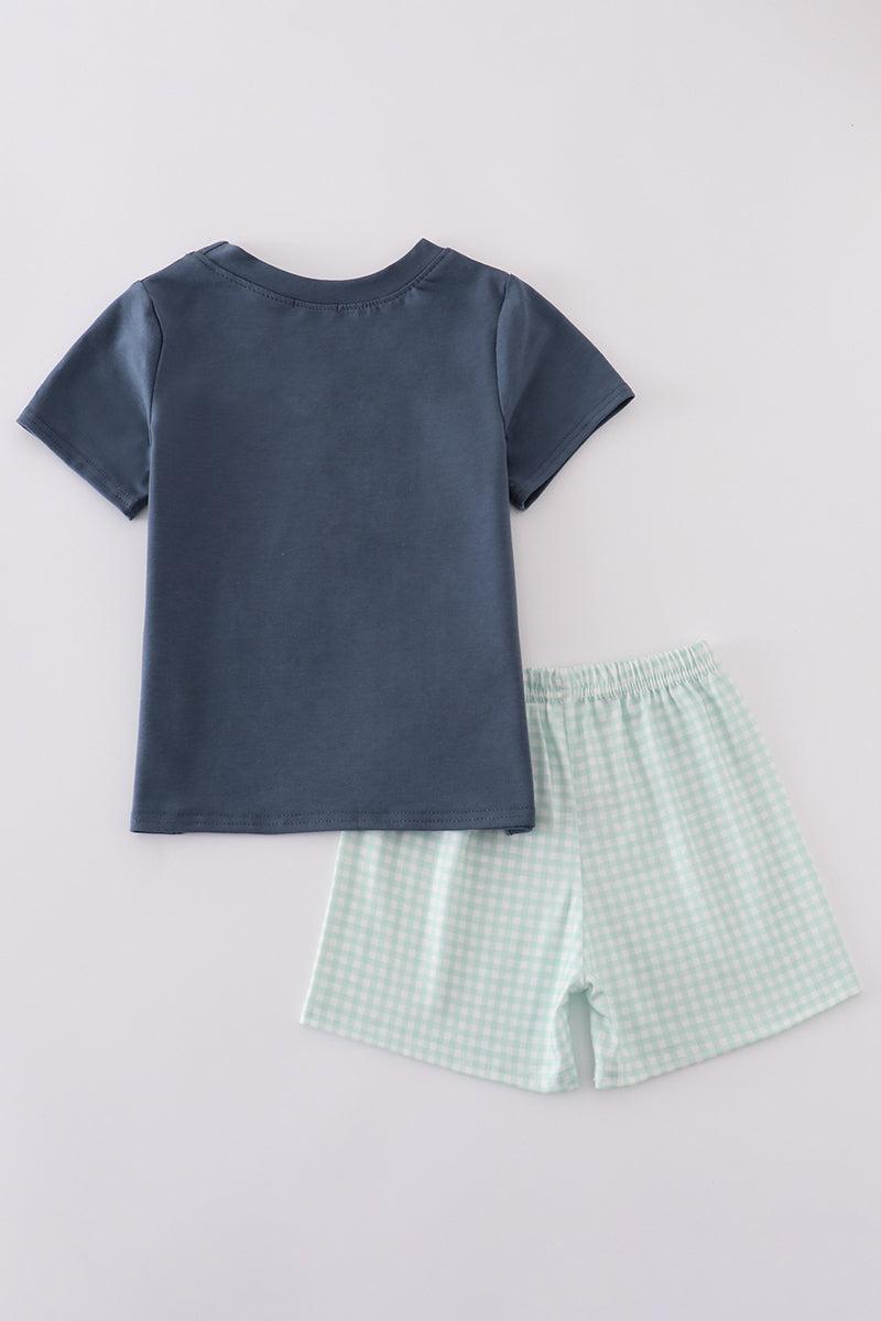 Navy puppy birthday applique boy set