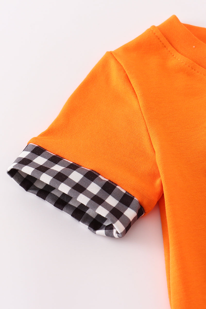 Orange halloween character french knot romper