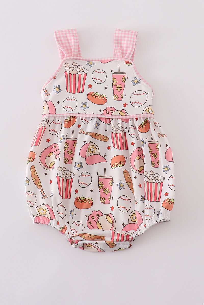 Pink baseball print gingham bubble