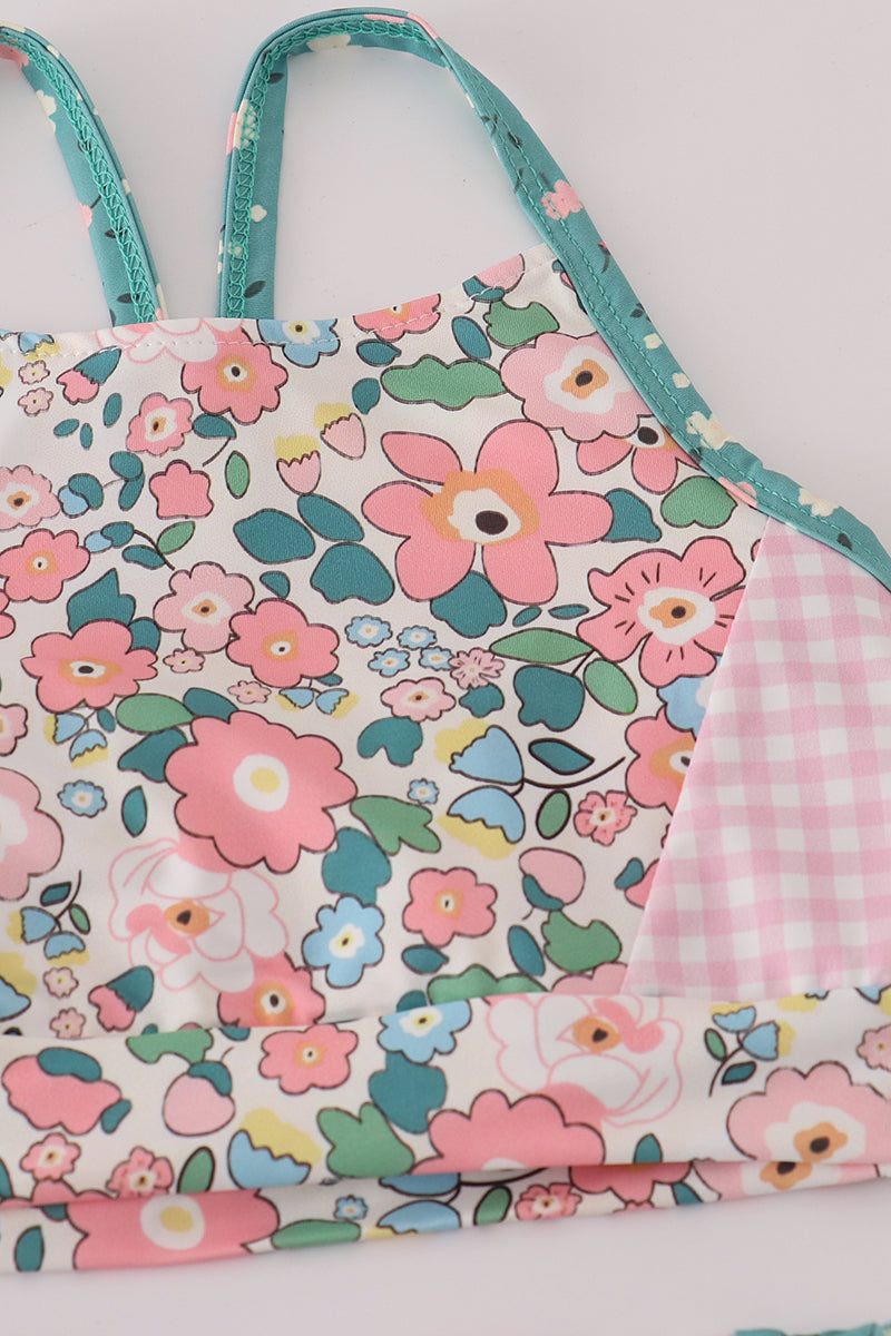 Pink floral print 2pc active tank legging set