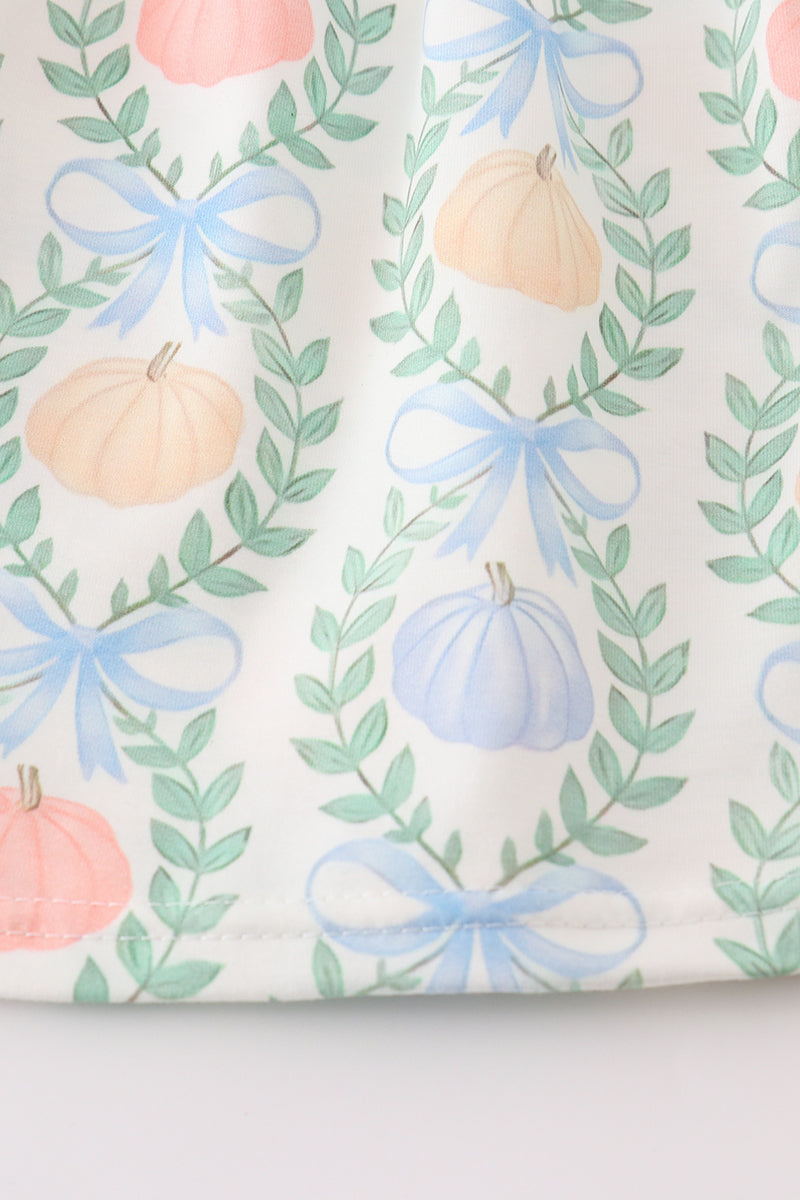 This playful and quirky baby girl set features a charming pink pumpkin print, perfect for adding a touch of whimsy to any outfit. With its comfortable and adorable design, this set is sure to delight both parents and little ones alike. (Just like a pumpkin spice latte, this set is a fall must-have!)