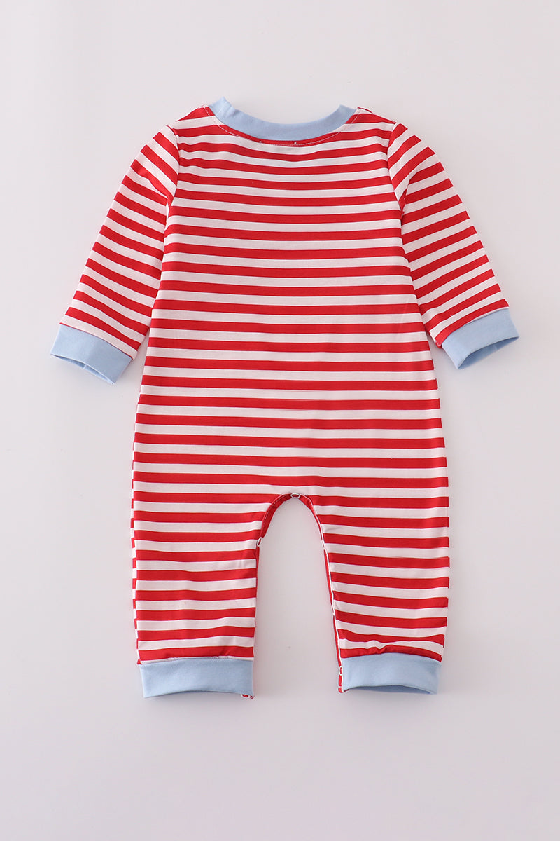 This charming romper features playful red airplane embroidery and classic stripes, perfect for little adventurers. Soft and comfortable, it’s designed for easy movement and all-day fun. Let your child’s imagination take flight in this delightful outfit!