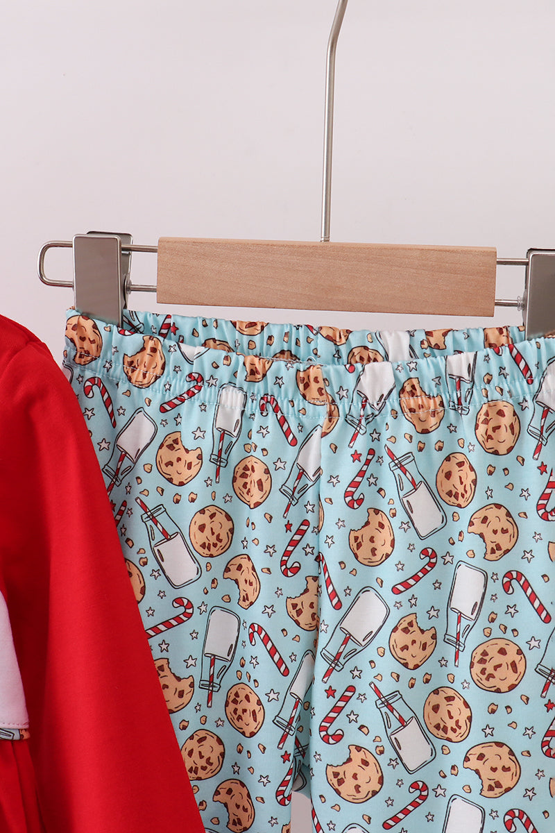 Red santa claus cookie french knot ruffle pants set