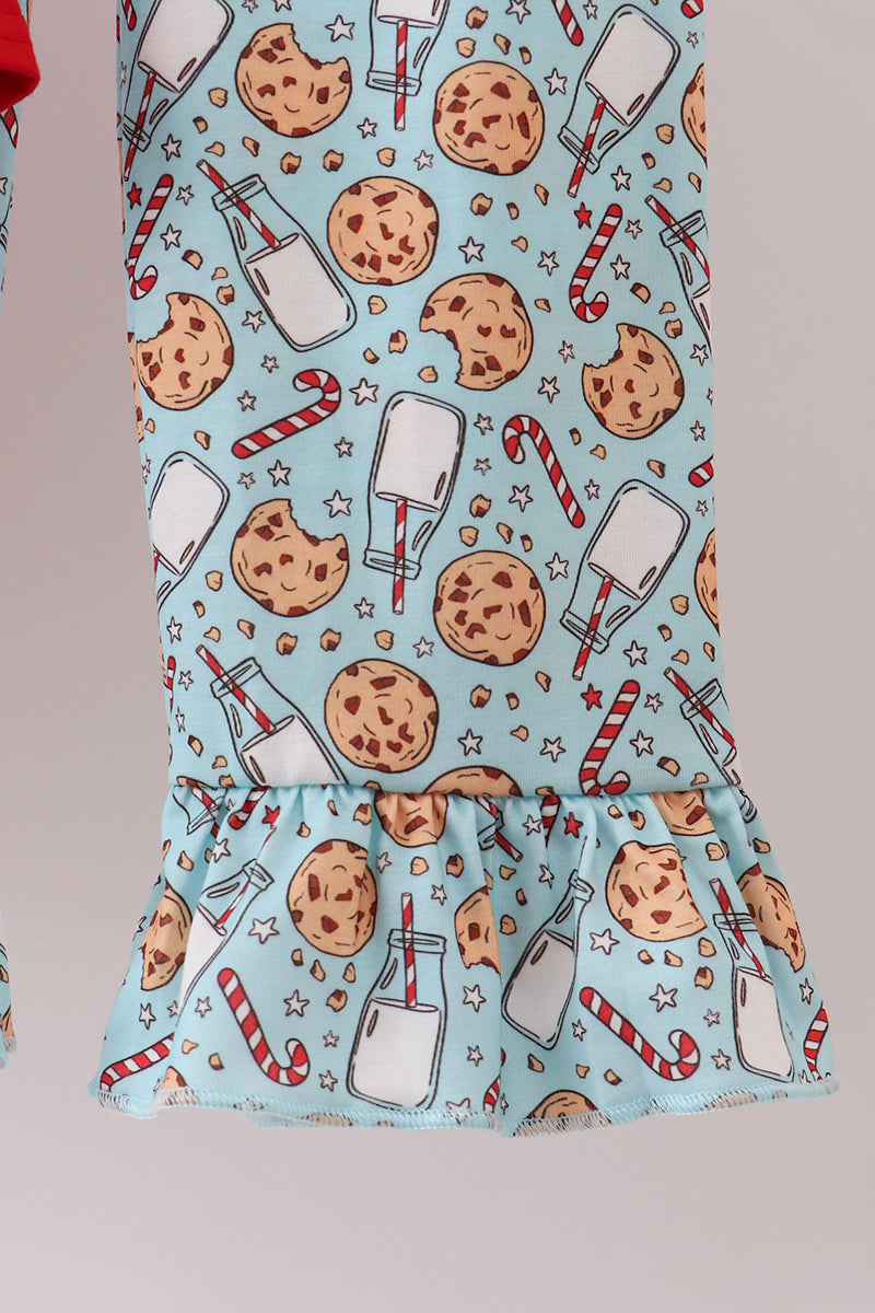 Get ready for festive fun with this playful Red Santa Claus cookie French knot ruffle pants set. Featuring charming Santa and cookie details paired with delicate French knot textures, these ruffle-trimmed pants add a whimsical touch to holiday outfits. Perfect for spreading cheer in style and comfort during the season!