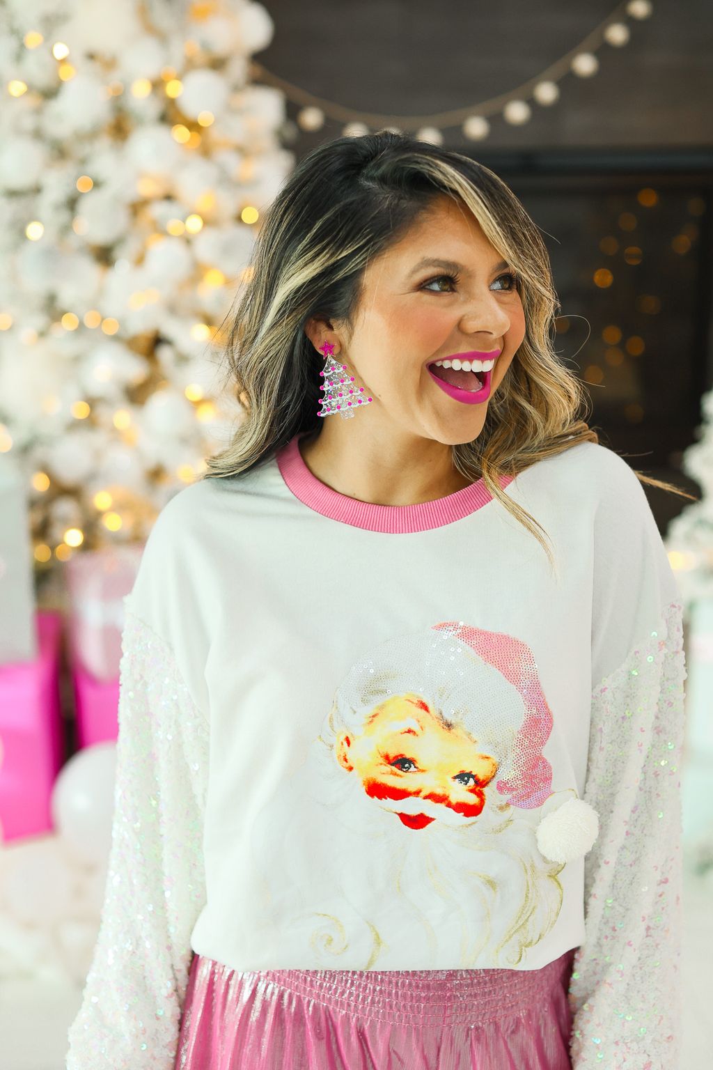 Santa Claus White Sweatshirt with Sequin Sleeves