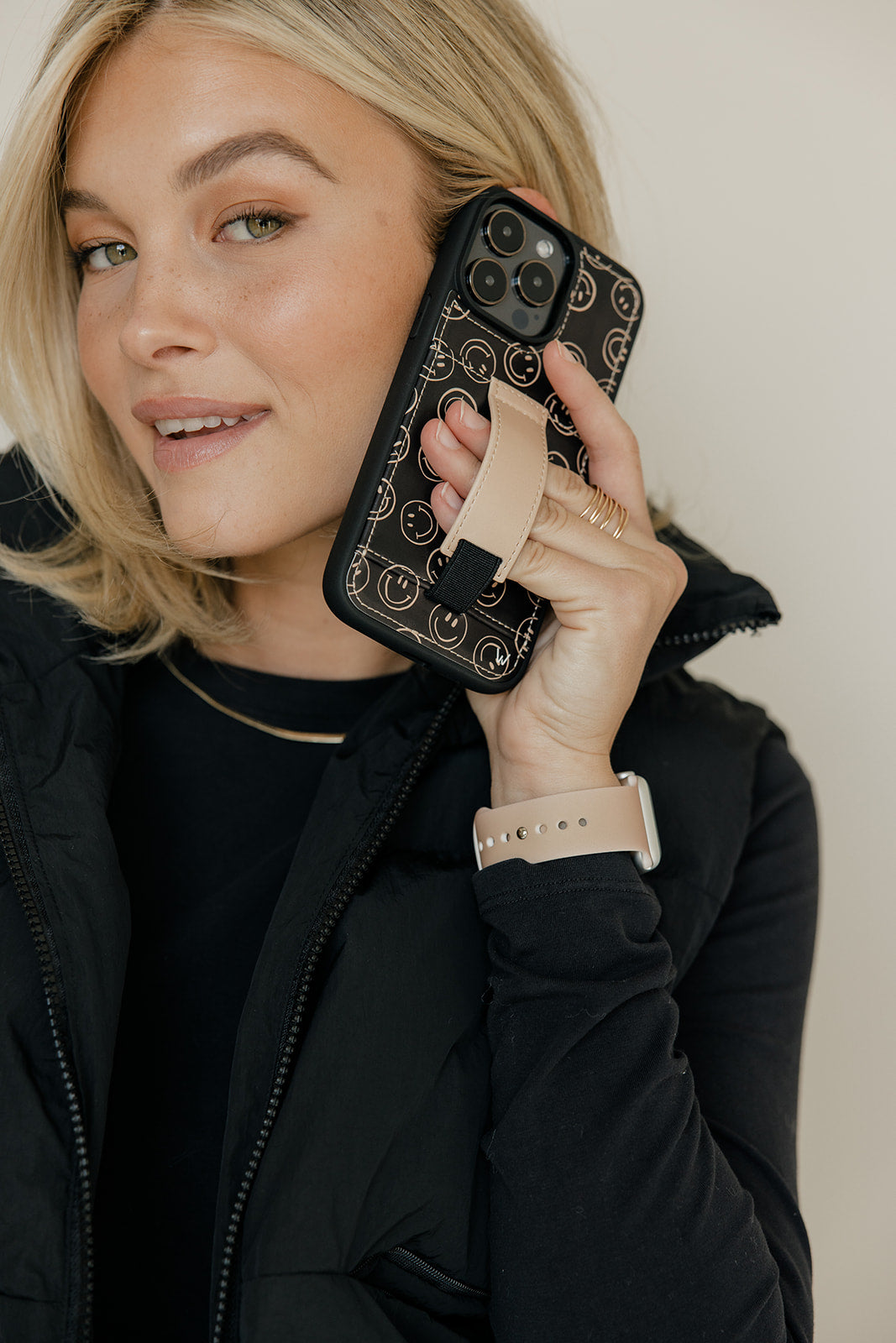 Pair this case with the coordinating Smile Squad wrist lanyard and Apple watch band!