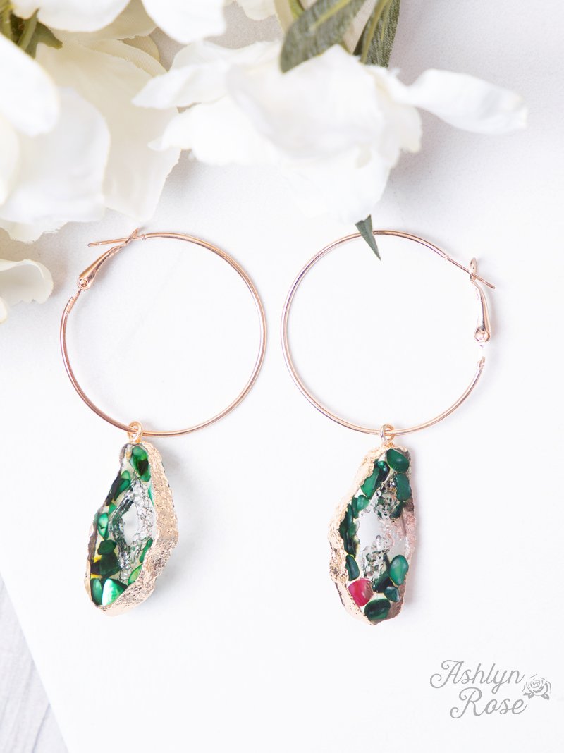Special Collection Geode Hoop Earrings, Green