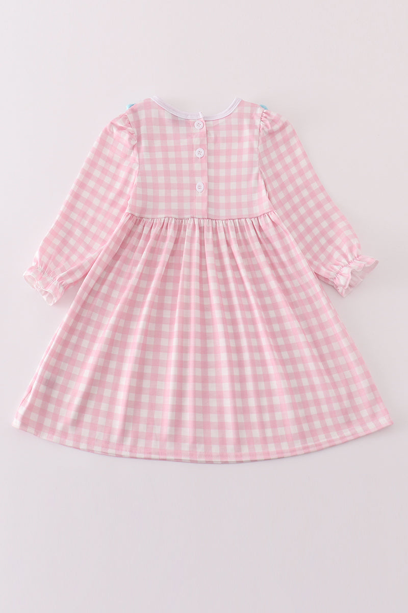 Valentine's day heart envelope embroidery plaid girl dress